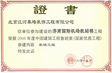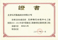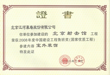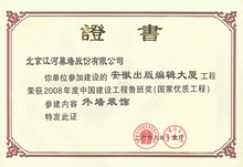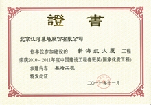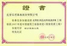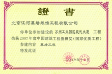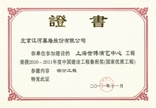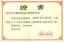 江河幕墙凭借雄厚的综合实力、优良的设计以及高品质的施工服务, 不断超越自我, 超越行业。自2003 年获得第一项鲁班奖工程开始, 江河幕墙共摘取了74项鲁班奖。其中2008 年一举荣膺八项鲁班奖, 创鲁班奖设立以来单个施工资质企业一年度获“鲁班奖”最高纪录。