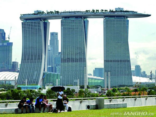 新加坡金沙(The Marina Bay Sands)综合娱乐城是由美国博彩公司拉斯维加斯金沙(Las Vegas Sands)在新加坡投资兴建的一座综合性大型豪华度假娱乐城,占地57万平方米,总建筑面积70万平方米,总耗资57亿美元,包括赌场、歌剧院、艺术科学博物馆、购物商城、大饭店、会展中心及宴会大厅,共6大建筑系列。娱乐城内有2500个房间,在高达55层楼的饭店内,设有赌场,空中花园及户外游泳池。江河幕墙自2008年7月中标金沙综合娱乐城项目以来,在江河幕墙项目团队精诚团结、勤奋、积极、开放的工作作风和精神引领下,历时1年零11个月的施工,顺利完成项目施工,确保了金沙综合娱乐城的盛大开业和荣耀亮相。