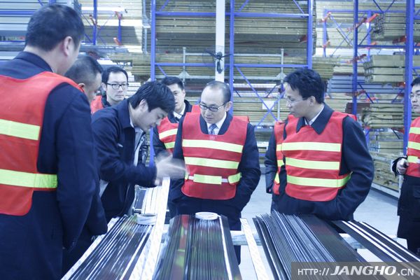 \r\n 随后,潘董事长一行与公司刘董事长等高层领导进行了亲切友好的座谈。座谈结束后,考察组一行在刘董事长的陪同下,前往江河幕墙建成并投产的全球幕墙行业最大的单体幕墙制造工厂。在国际一流、国内领先的现代化工厂内,潘董事长一行细致考察了江河幕墙行业领先的技术设备、仓储车间、自动化流水线及成品包装养护等,对部分江河幕墙独创的技术工艺进行了仔细询问并观看了技术人员的现场精密测试。参观过程中,潘董事长屡次对江河幕墙的工厂布局、技术设备、制造工艺等展露出赞赏的笑容。