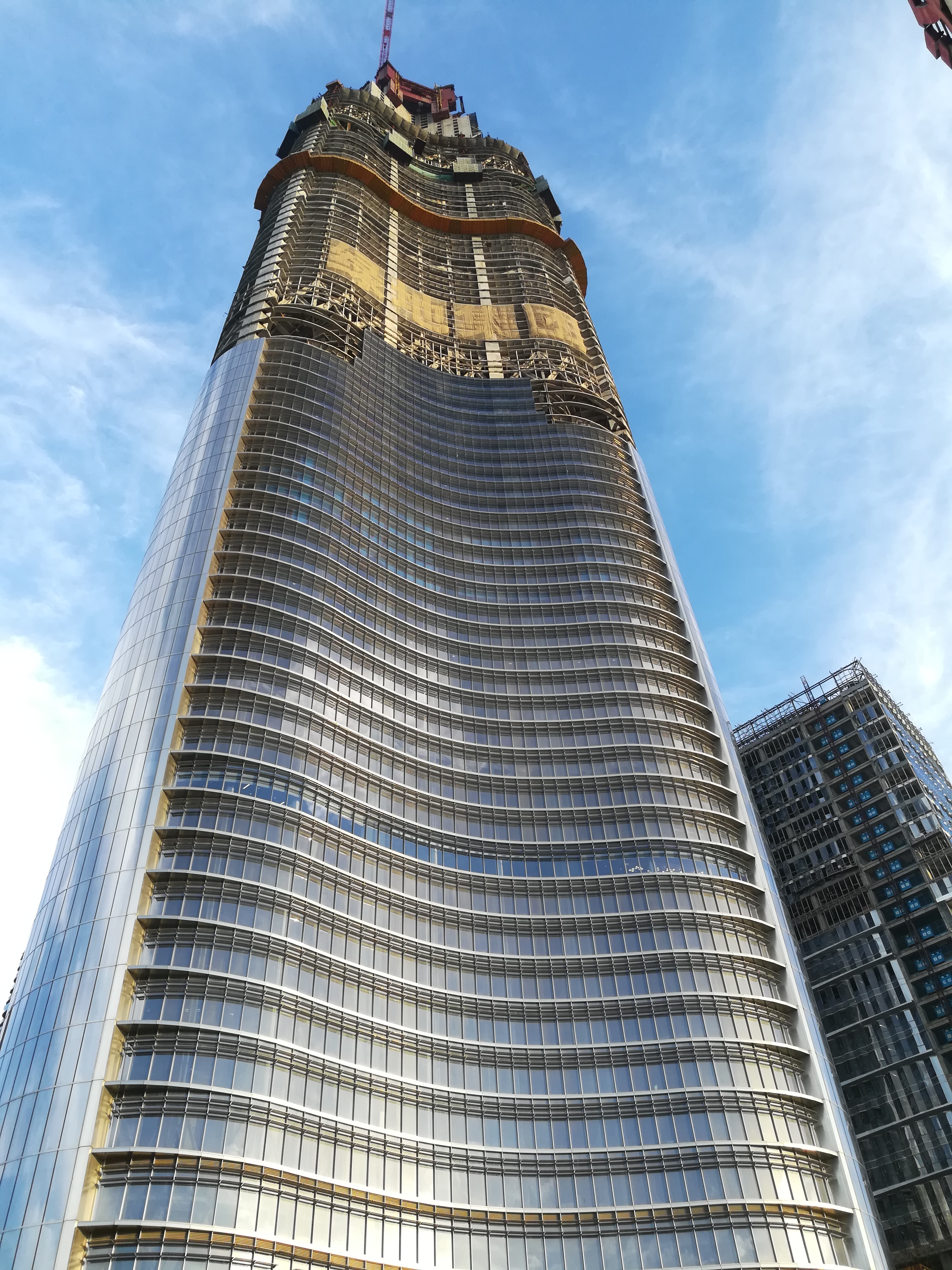 武汉绿地中心项目位于武汉市武昌区江滨商务区。主楼高达636米,建成后将成为集超五星级酒店、高档商场、顶级写字楼和公寓等于一体的超高层城市综合体,并刷新武汉市新的天际线。该项目由一栋超高层塔楼,一栋办公辅楼,一栋公寓楼及裙楼组成。其中超高层塔楼结构形式采用巨型框架-核心筒-伸臂桁架结构体系,地下室6层,地上结构120层,剖面造型成三瓣状,立面呈现锥形,外观呈流线型,顶部尖而光滑。1层~35层结构逐渐变大,35层以上结构逐渐变小,塔体从上至下设置3个风洞位,风可以"穿堂而过",减少大风对大楼的危害。本项目塔楼外幕墙主要为单元式幕墙,穹顶塔冠和首层大堂为构件式幕墙,材料种类多,数量大,面积共计约14万平方米,单元板块数量多达20000多块,单元板块采用曲面或双曲面的设计,在竖直方向以内倾斜的方式拟合建筑形体的空间曲面,施工难度大。