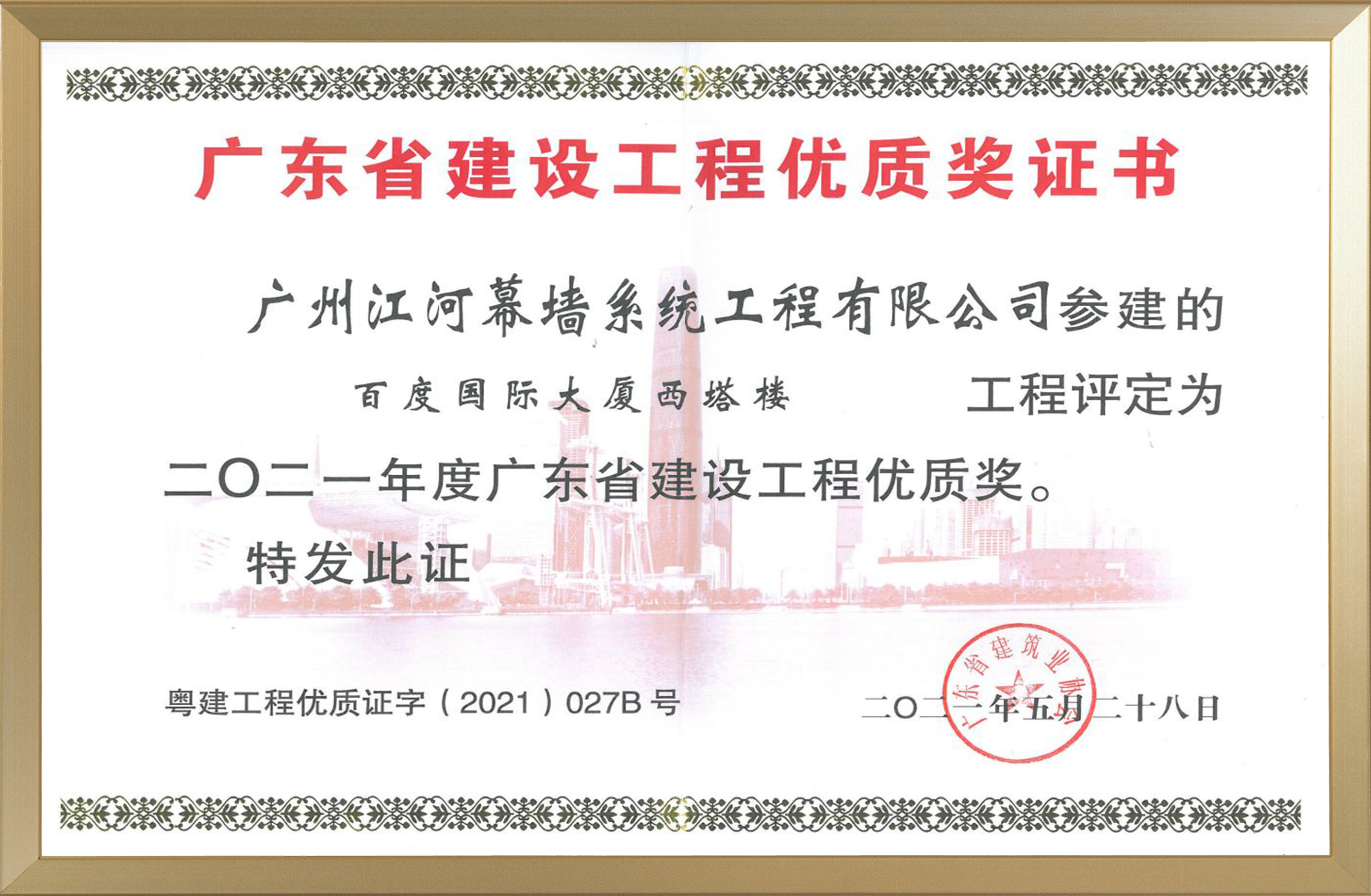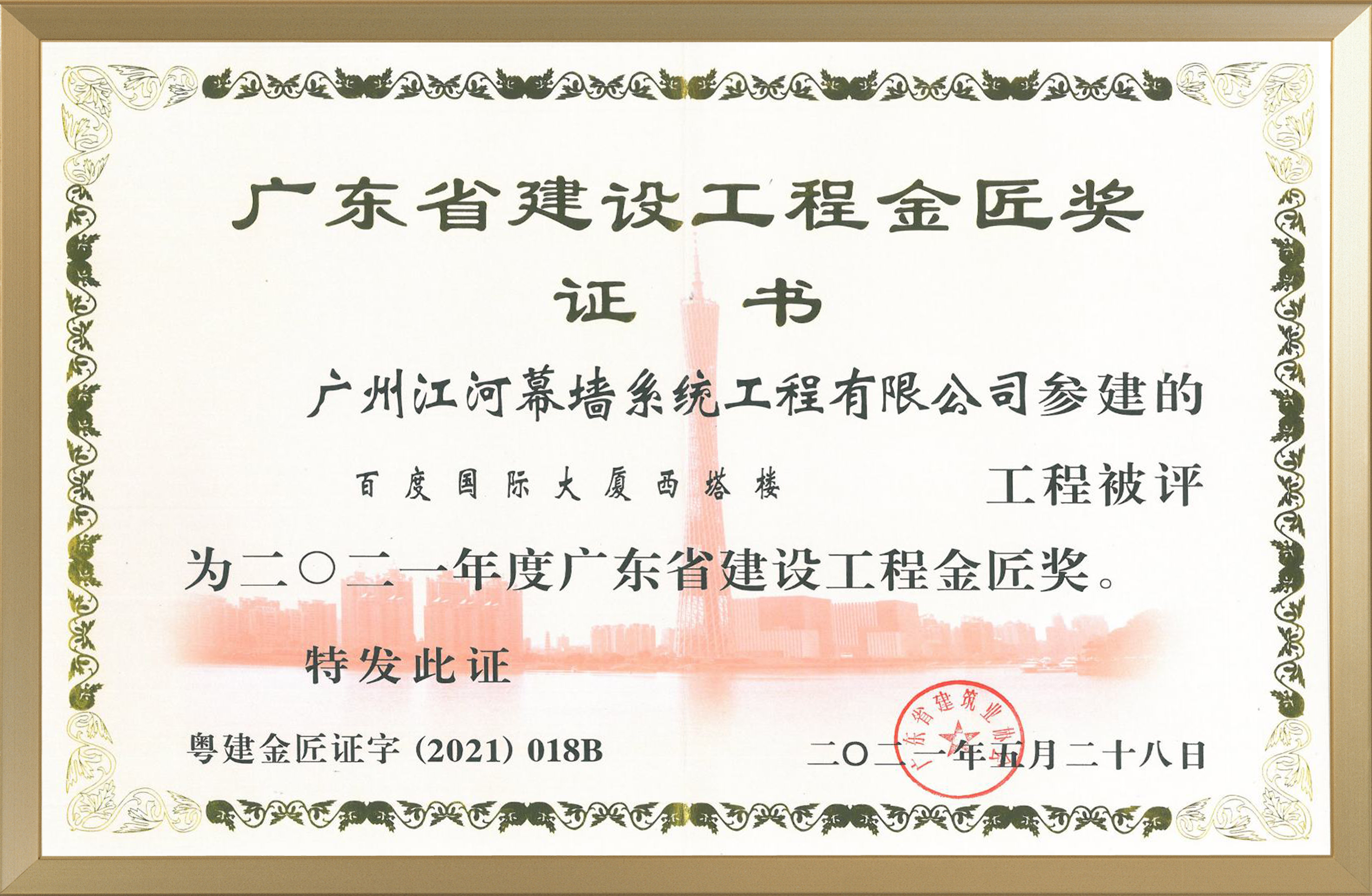 不断提升施工质量,持续抓好工程创优工作,近日,广州江河项目建设连获佳绩。珠海十字门会展中心一期、百度国际大厦西塔楼项目、平安金融中心南塔、华润城润府三期等项目分别荣获多项建筑大奖,再次彰显了江河幕墙品牌的品质与实力。\r\n