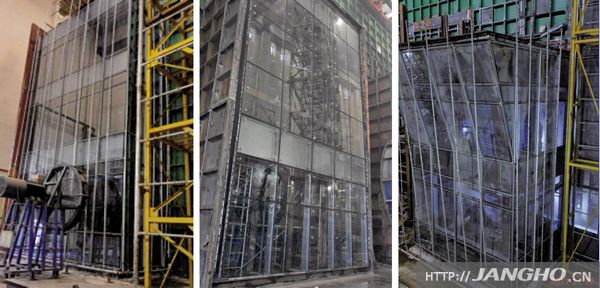 \r\n 在这三次试验中,业主,ALT顾问,NBBJ建筑师,监理单位代表在试验现场进行严格的监控, 最终试验结果和设计分析结果几乎精确吻合,所有试验均一次性通过。这三次试验的成功,不仅突出了大连中心·裕景二期幕墙施工设计组缜密的设计思路及卓越成果,公司采购部对材料质量的严格把控,生产部加工成品的优秀质量,项目部在试验现场安装试验体的超高精度,还表现出公司领导对大连中心·裕景二期这个项目的大力支持,充分体现江河幕墙团结一致的精神。
