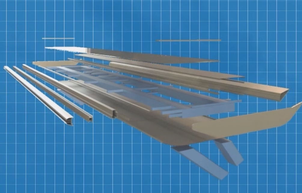 单元板块内部主龙骨选用氟碳喷涂钢方管,外饰面板有铝单板、光伏玻璃系统等,将龙骨与幕墙材料组成超大单元板块,最终实现单元体的装配式安装,实现了光伏建筑一体化,让建筑自己发电,助力打造一座绿色、低碳的现代化场馆。