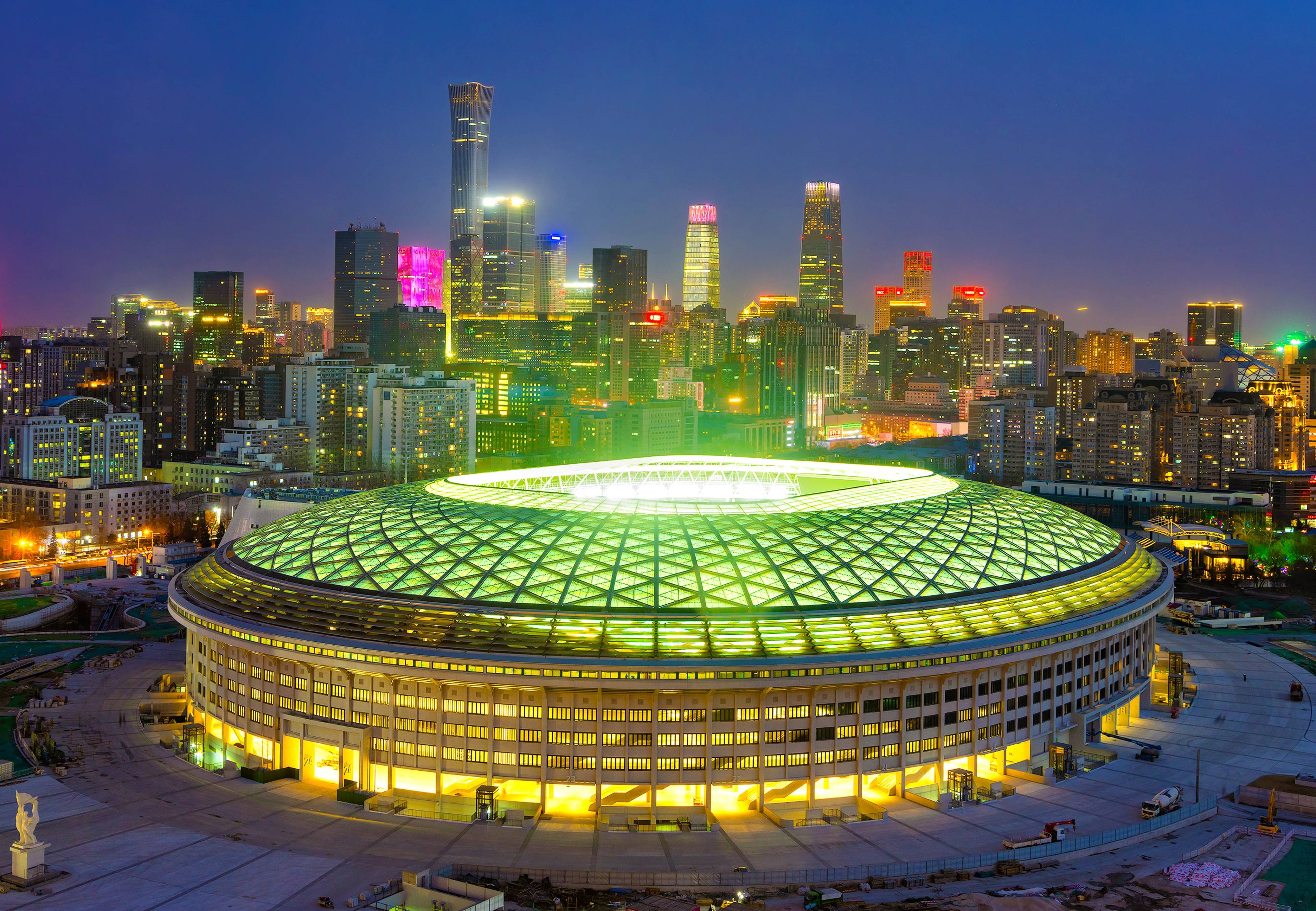以全新面貌亮相的工体保持了原有造型、外立面等特色元素,人们依然可以从水泥色立面、雕塑和装饰构件中找寻到记忆中老工体的影子,同时,新工体又融入现代设计,对标欧洲“看台碗”,使观赛体验得到极大提升,为北京注入新的生机和活力。